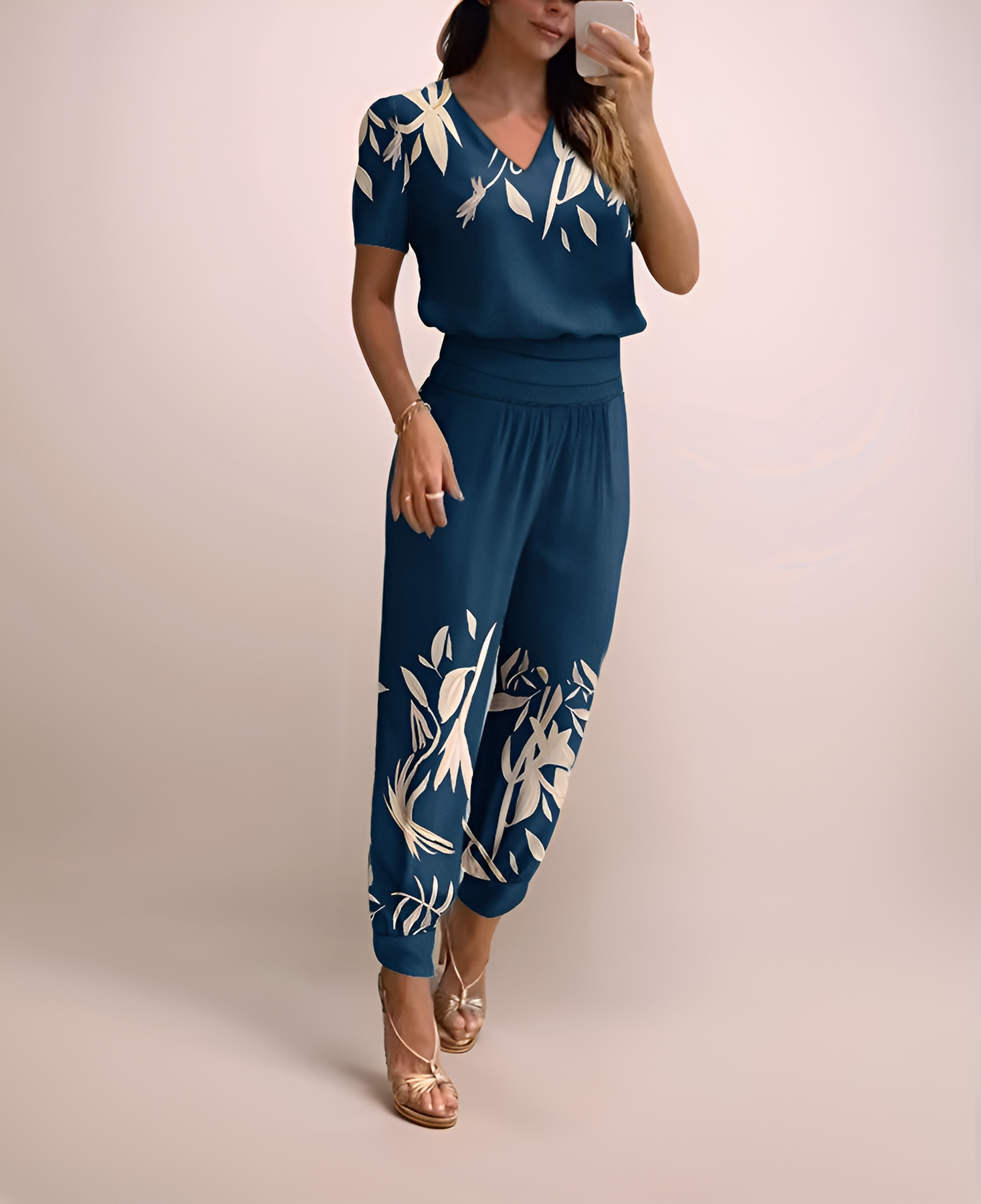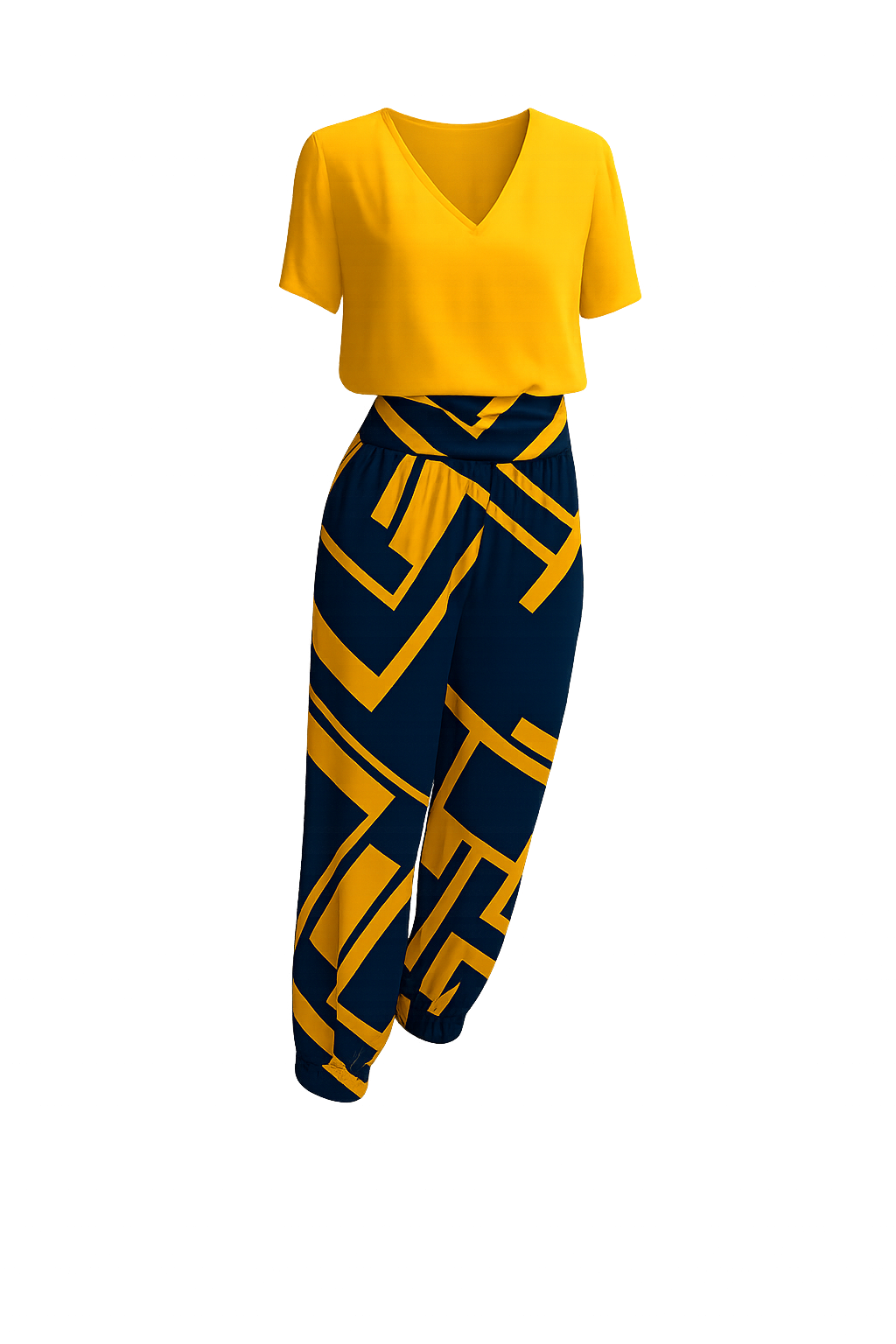 Luxe uitstraling zonder moeite: De elegante V-hals top en stijlvolle broek geven je in één keer een verzorgde look – zonder gedoe.