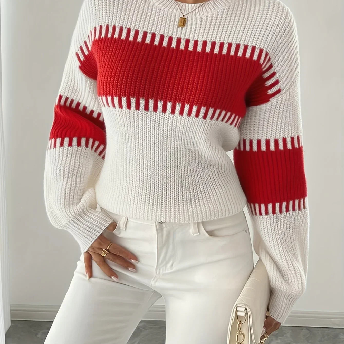Dames trui | Gebreide sweater met strepen en ronde hals