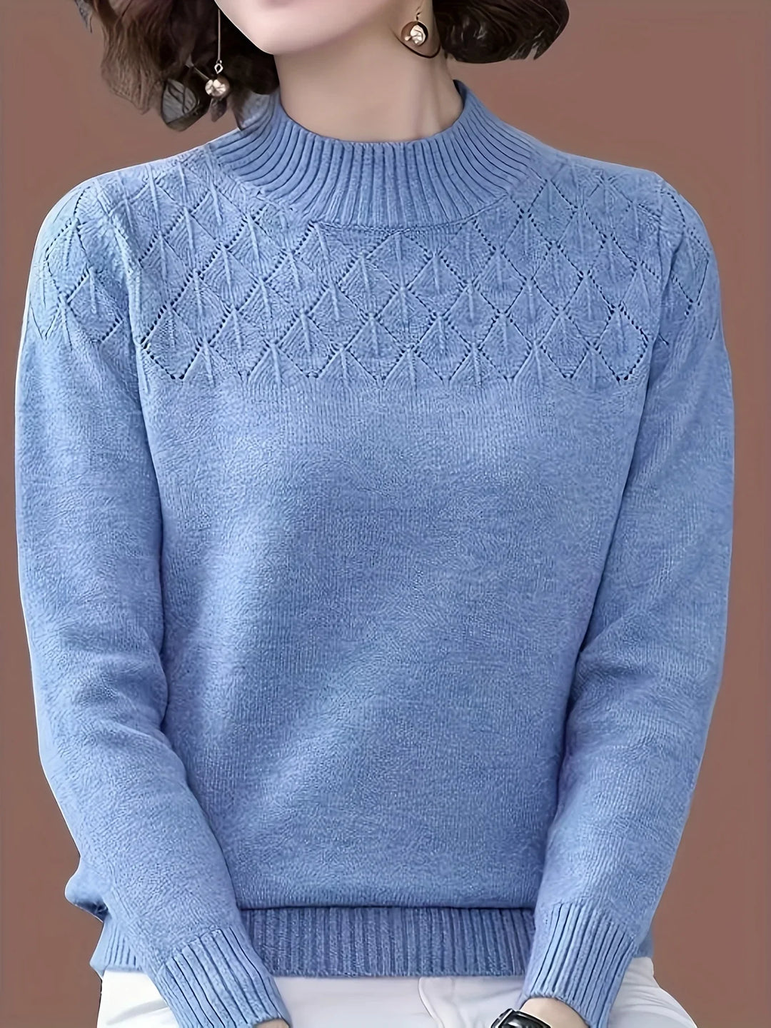Dames trui | Blauwe viscose sweater met diamantpatroon lange mouw