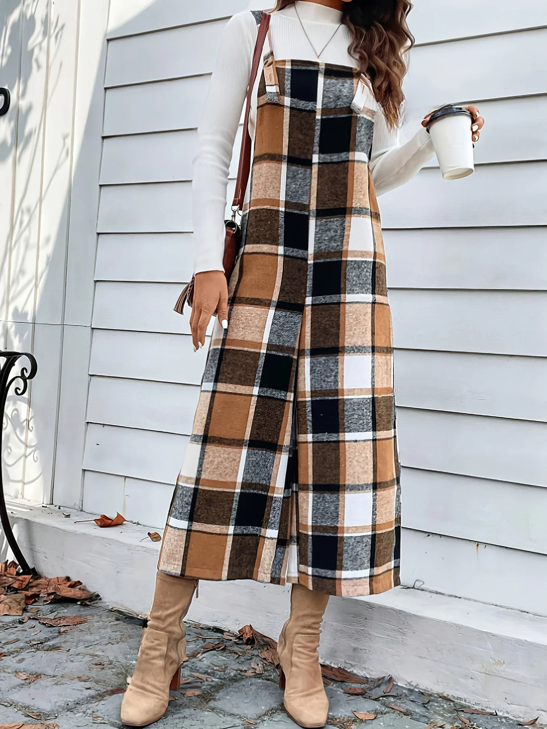 Dames jumpsuit | Ruit broekpak met square neck en wijde pijpen