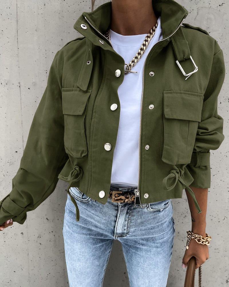 Dames jas | Winterjas met klepzakken en trekkoord in beige