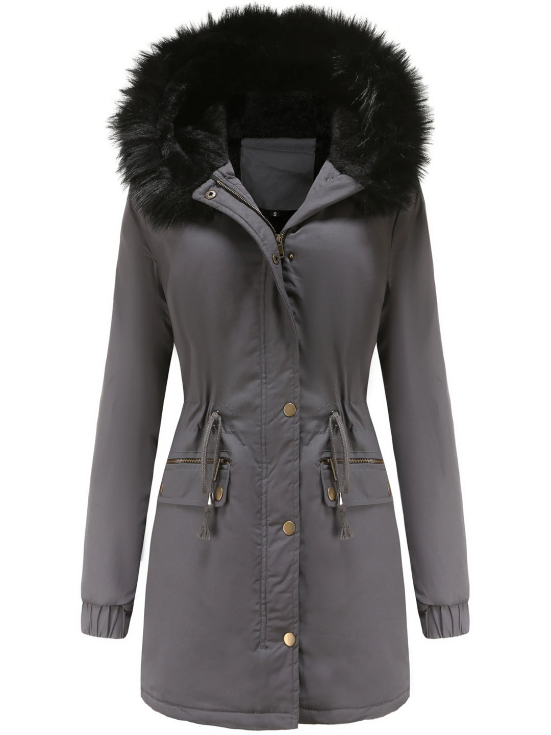 Dames parka jas | Lange winterjas met bontkraag en taillekoord