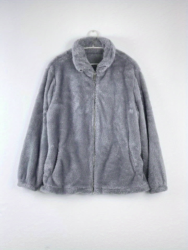 plus size womens winter arctic fleece jacket cozy zip up casual outerwear with pockets machine washable solid color regular fit long sleeve for fall winter winter jacket plush texture 4