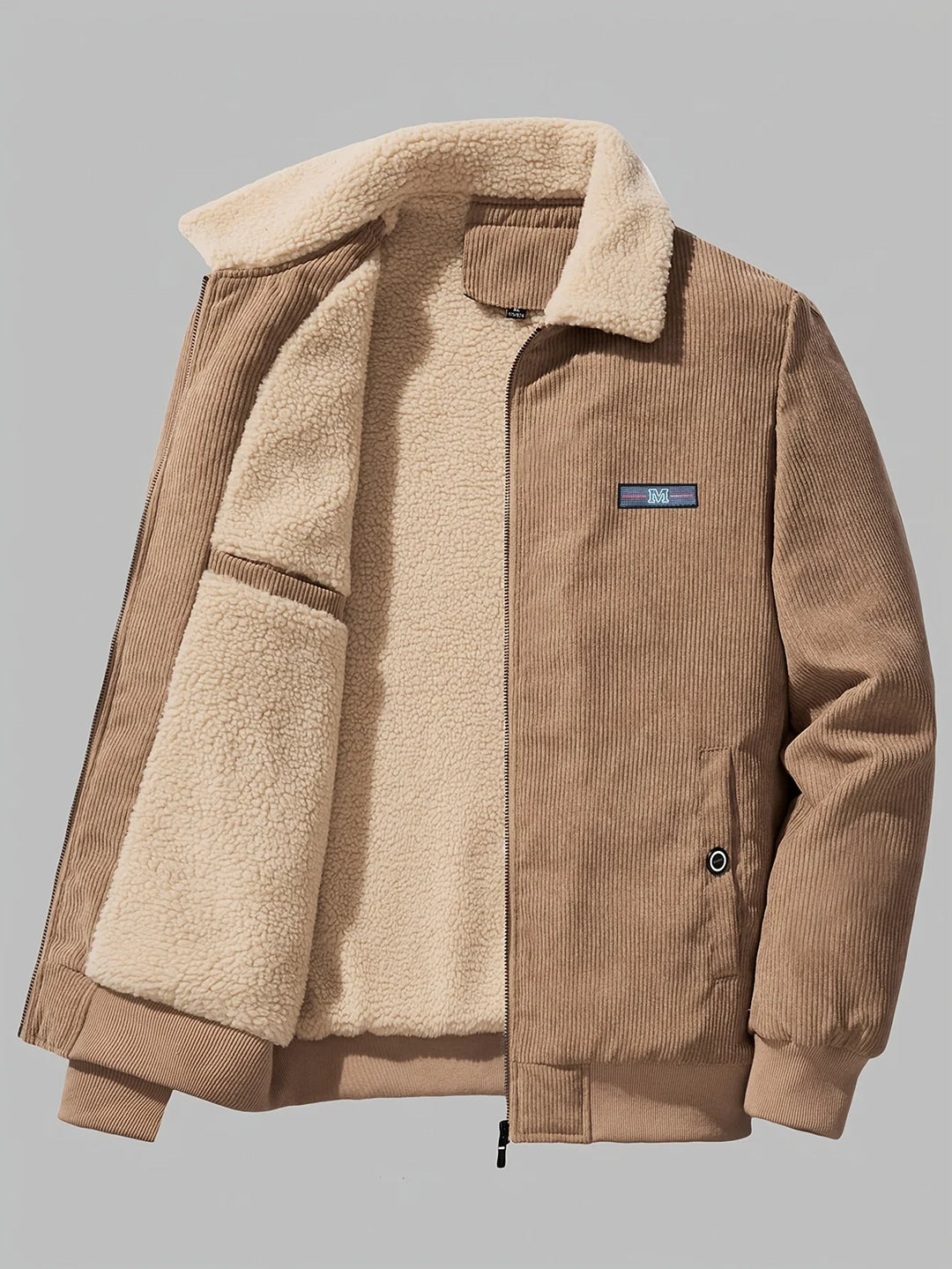 Heren winterjas | Corduroy jas met fleece voering en kraag