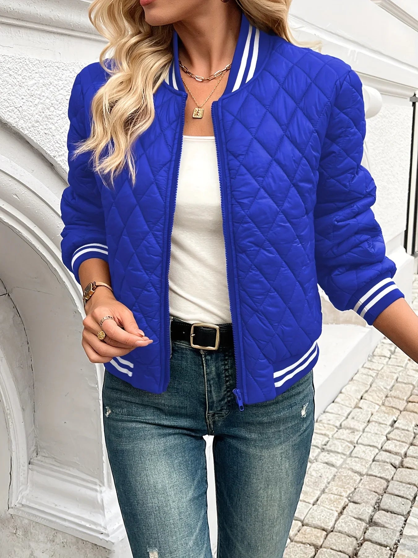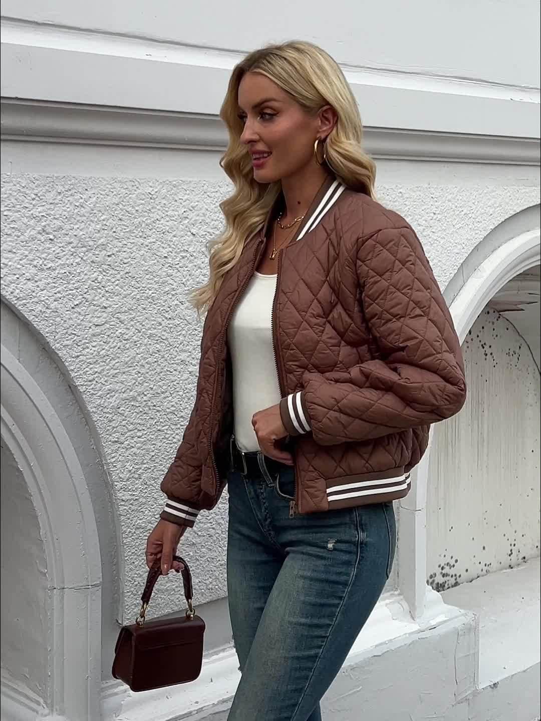 Bomberjack dames | Gewatteerd quilted jas met ritssluiting