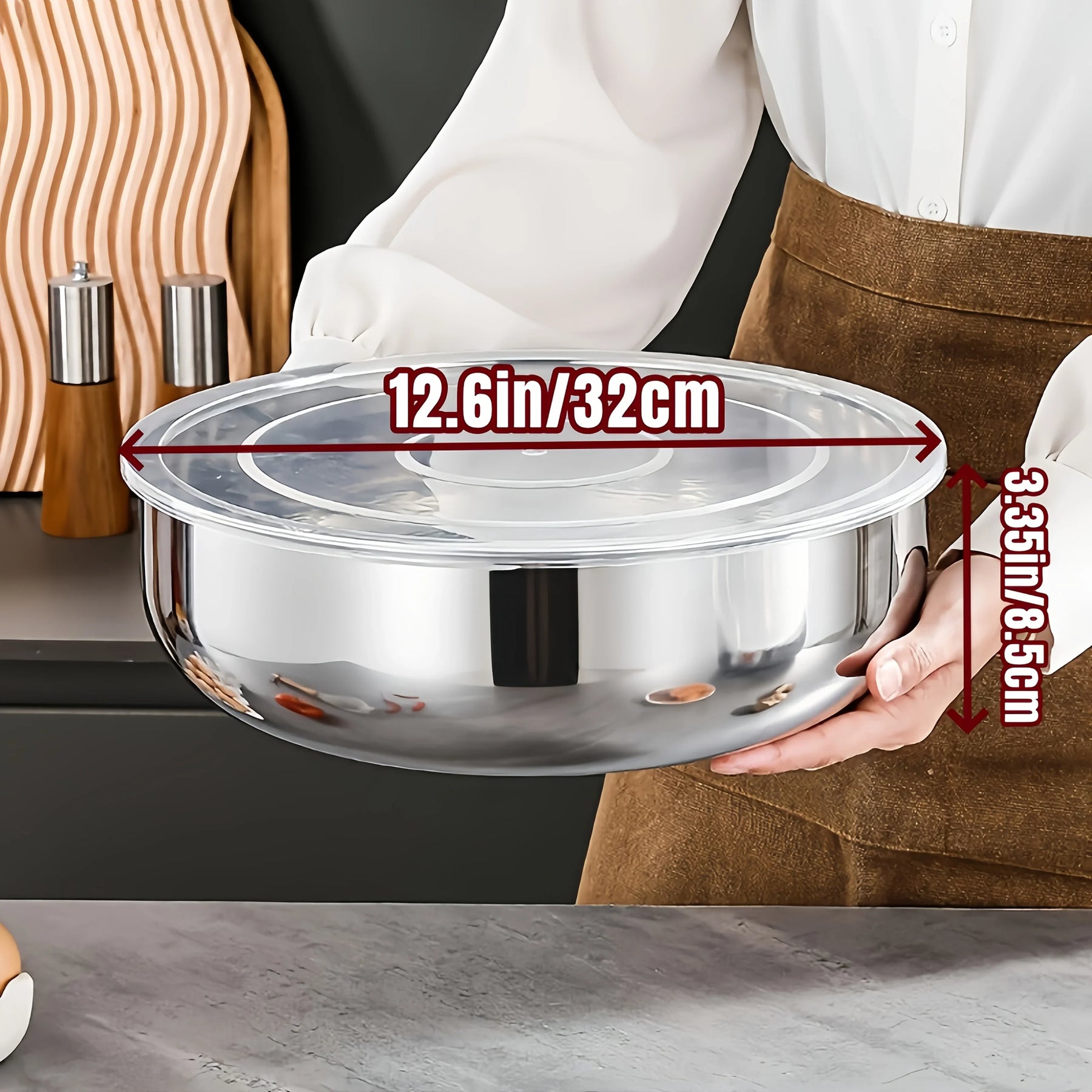 roestvrijstalen mengkom - roestbestendig, ideaal voor  , salades, soepen, kneden van  , noedels en koken van soep - veelzijdige keukenbenodigdheid met doorzichtige deksel, voorbereiding van   | veelzijdig keukengerei | roestvrijstalen kom 3