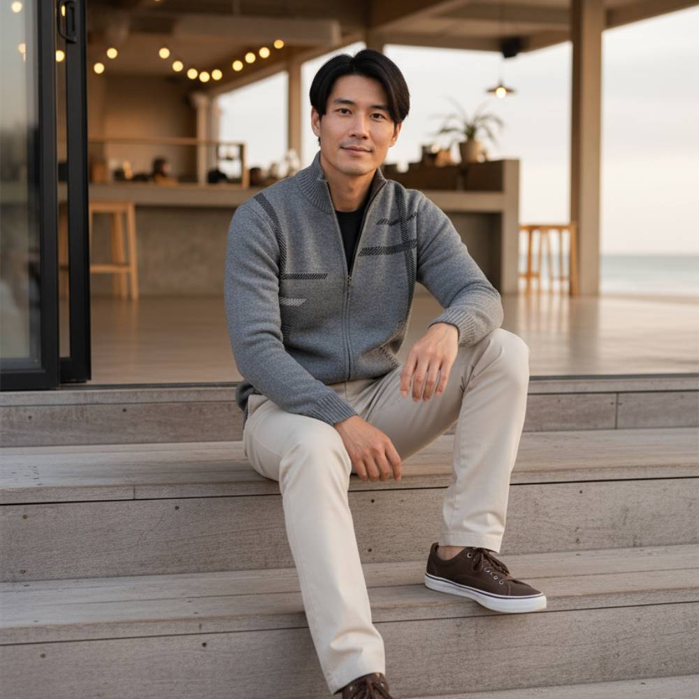 Met dit heren vest haal je een veelzijdig vest in huis dat je look compleet maakt – stijlvol, warm en altijd klaar om te dragen.