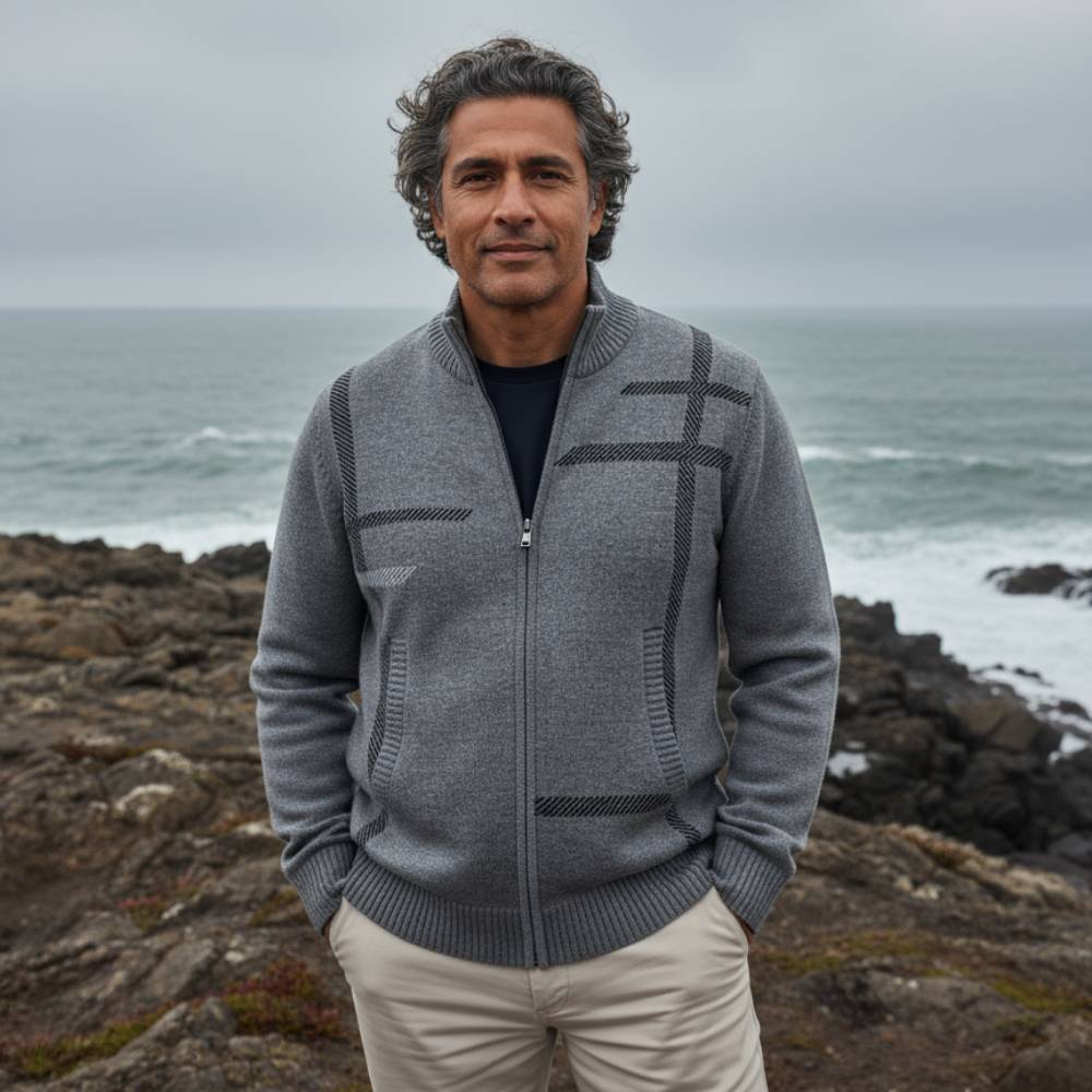 De Osvaldo is het perfecte vest voor heren die comfort en verfijning weten te combineren. Met zijn moderne lijnpatroon en hoge kraag voegt dit vest direct stijl toe aan elke outfit, terwijl het zachte, duurzame materiaal je de hele dag warm houdt. Dankzij de volledige ritssluiting is het gemakkelijk aan en uit te trekken, en past het moeiteloos over een overhemd of T-shirt. Ideaal voor zowel zakelijke als casual gelegenheden.