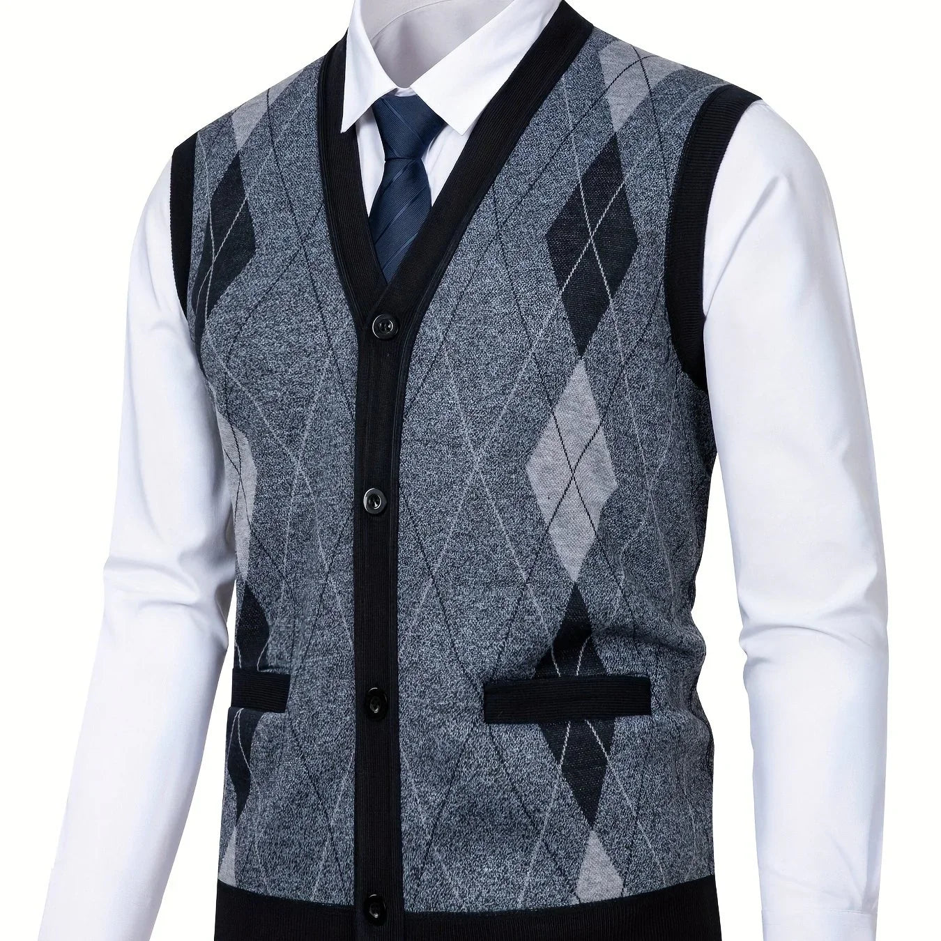 Heren spencer | Gebreid vest zonder mouwen met ruitpatroon