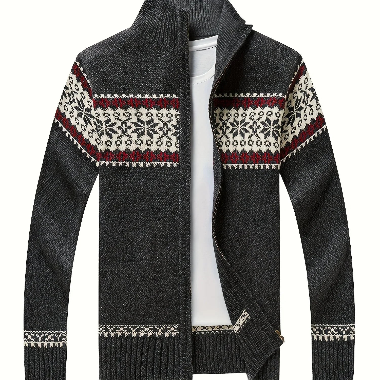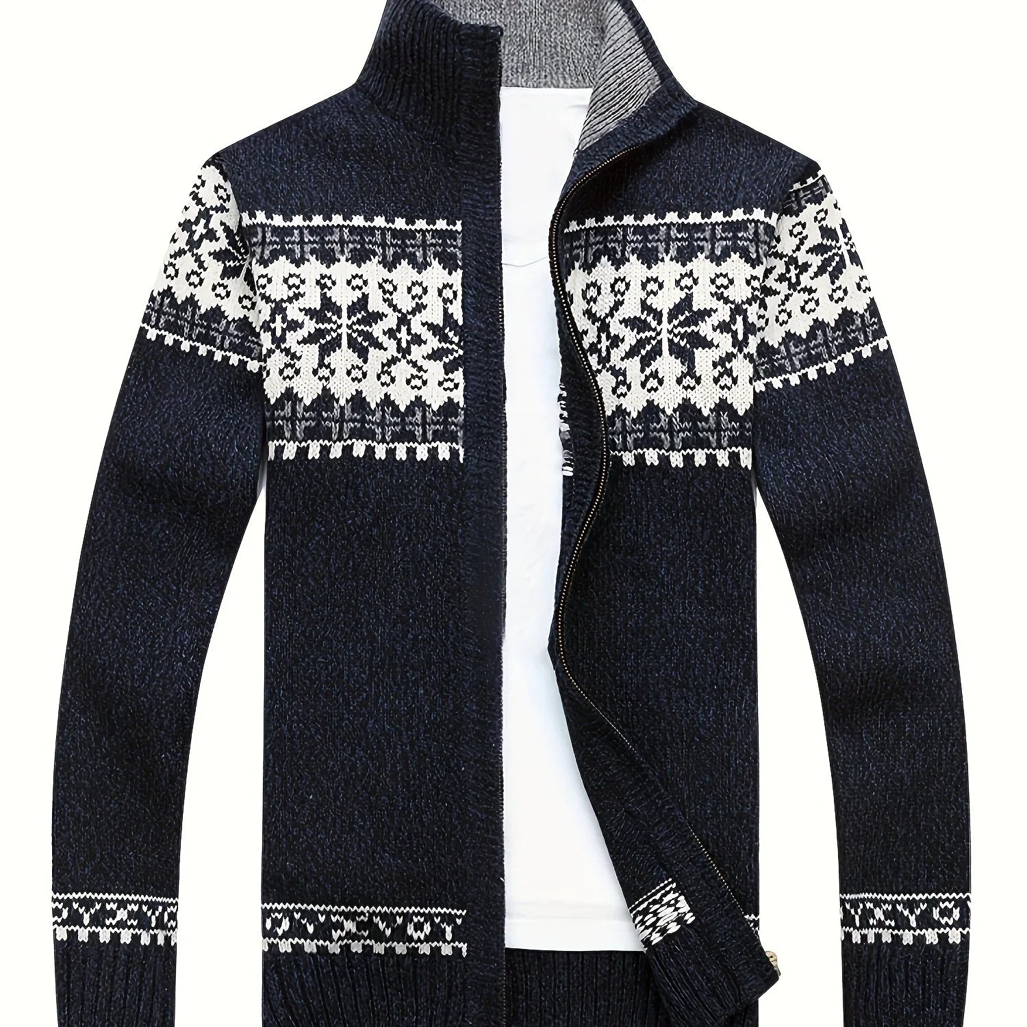 Heren vest | Gebreide cardigan met sneeuwvlok patroon en rits
